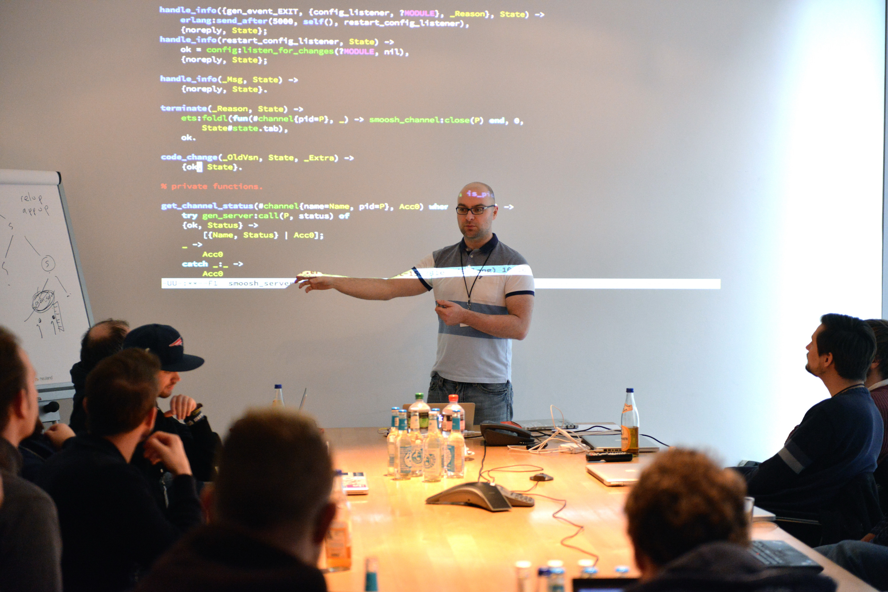 We recognised, that the time period between the lunch talks and the last talk was a bit long. Maybe everyone ate too much because it was that good ;-). So to not stress everybody’s mood, we asked Ólafur Arason if he would start 30 minutes earlier with his talk Reusing CouchDB cookies for token based urls. And so he did.
